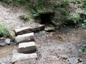 Die Quelle sprudelt und zum Überqueren des Baches gibt es anstelle einer Brücke ein paar Trittsteine. Allerdings ist mir als Märchenerzählerin ja der Name „Wilhelm-Grimm-Weg“ ins Auge gesprungen, doch ich konnte bis jetzt nicht ergründen, warum er so heißt. Weder gab es irgendwo Tafeln mit Märchen oder Erklärungen, noch hat meine Internet Recherche irgendetwas zu Tage gefördert. Also, wenn einer von Euch weiß wieso der Weg diesen Namen trägt, dann schreibt es mir bitte in die Kommentare, denn ich würde das Rätsel gern lösen.